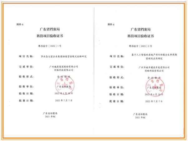 近日,集团总部《多业态大型企业集团档案管控模式创新研究》项目和凯发天生一触即发地产《基于人工智能的房地产项目档案全生命周期管理及应用研究》项目通过省档案科技项目验收,两个项目获得专家组充分肯定,成为省档案局科技项目管理办法修订后首批通过科技验收的项目。